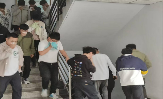 为确保此次演练活动顺利进行,beat365中文官方网站制定了详细的疏散方案并对工作人员进行了培训。演练开始前,负责老师详细介绍了逃生演练方案,明确了演练的目的、过程和注意事项,强调了消防应急演练的重要性、演练纪律和安全要求。在学生充分了解演练方案后,活动正式开始。随着宿舍警报声响起,各楼层各楼梯口负责安全疏导的同学,迅速到达演练指定位置,指挥学生按照安全逃生疏散路线有序撤离。同学们闻声而动,用湿毛巾捂住口鼻、低头弯腰快速分成两部分从宿舍楼内有序撤离。到达安全场地后,各宿舍舍长清点人数,确保全员安全。