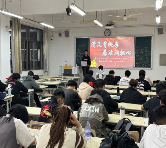 活动伊始,各班主讲人首先学习传达了《beat365中文官方网站新时代廉洁文化建设系列活动实施方案》文件精神,强调了廉洁文化建设的重要意义。接着,主讲人以图片展示、视频演示等形式,引领同学们了解廉洁的内涵、廉洁的重要性、腐败的危害等内容,并结合违规违纪违法反面典型进行以案说法,教育引导同学们要从典型案例中吸取教训,严守底线,自觉抵制失范行为,树立正确的世界观、人生观、价值观,用自己的实际行动共同营造风清气正的学习环境。