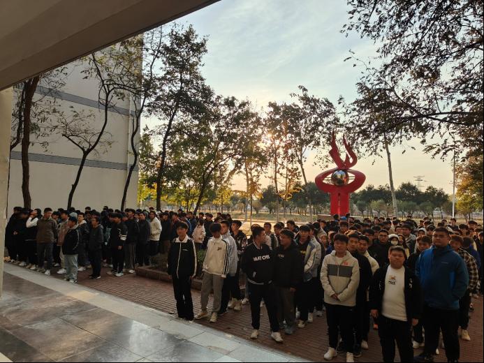 为保证演练活动安全、有序进行,学院进行了周密的部署,安排各班级负责人带队,有序撤离现场,并在每层楼的楼梯口、楼道转弯处都安排了安全巡查员,负责维持演练秩序,督察演练过程。演练开始前,负责老师详细介绍了逃生演练方案,明确了演练的目的、过程和注意事项,强调了消防应急演练的重要性、演练纪律和安全要求。在学生充分了解演练方案后,活动正式开始。随着警报声响起,学院立即启动火灾应急预案,正式拉开了消防安全演练的帷幕。在演练现场,全体工作人员和参与演练学生迅速按照演练方案开展警戒、疏散等工作,整个演练过程井然有序。