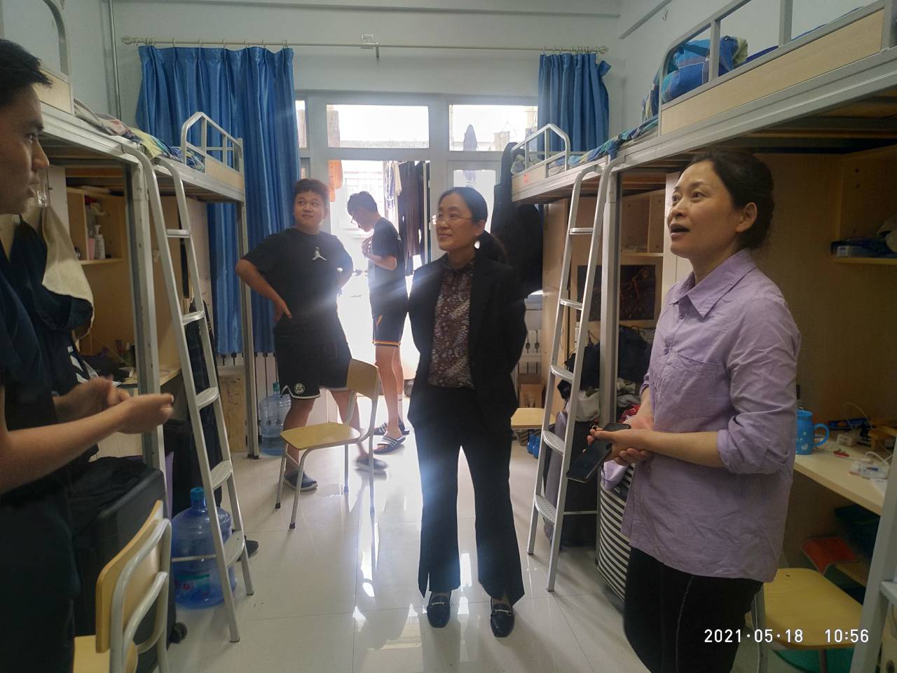 5月18日上午10:00,为了进一步落实学生寝室日常管理,做好毕业季相关工作,beat365中文官方网站学生工作组对2017、2018级本专科毕业生宿舍进行了安全卫生大检查。此次宿舍检查工作由学院党总支书记徐春堂、党总支副书记公金梅带队,学院全体辅导员参加。