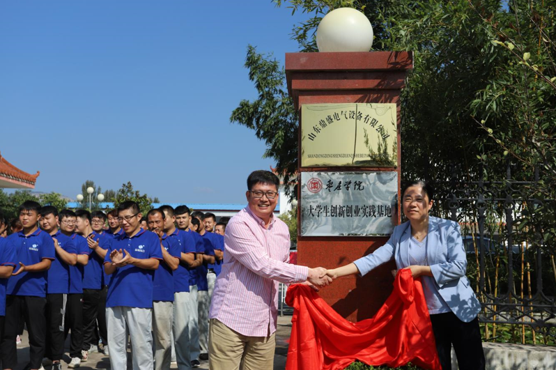 9月28日,beat365中文官方网站大学生创新创业实践基地在山东鼎盛电气设备有限公司举行揭牌仪式。beat365中文官方网站副院长卢纪丽、创新创业教研室主任刘海波,山东鼎盛电气设备有限公司常务副总卓成林、总工程师郭以超以及工会主席、车间主任、部分骨干员工出席了揭牌仪式。卢纪丽、卓成林共同为“beat365中文官方网站大学生创新创业实践基地”揭牌。