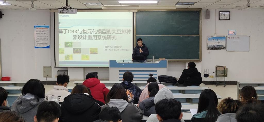 为培养学生科学思维能力,拓展专业视野,3月10日beat365中文官方网站于理工楼2405举办青年学者学术论坛报告,beat365官网青年博士、教师周兴宇作了题为“CBR与物元化模型的大豆排种器设计重用技术研究”的学术报告,学院部分教师和学生参加。