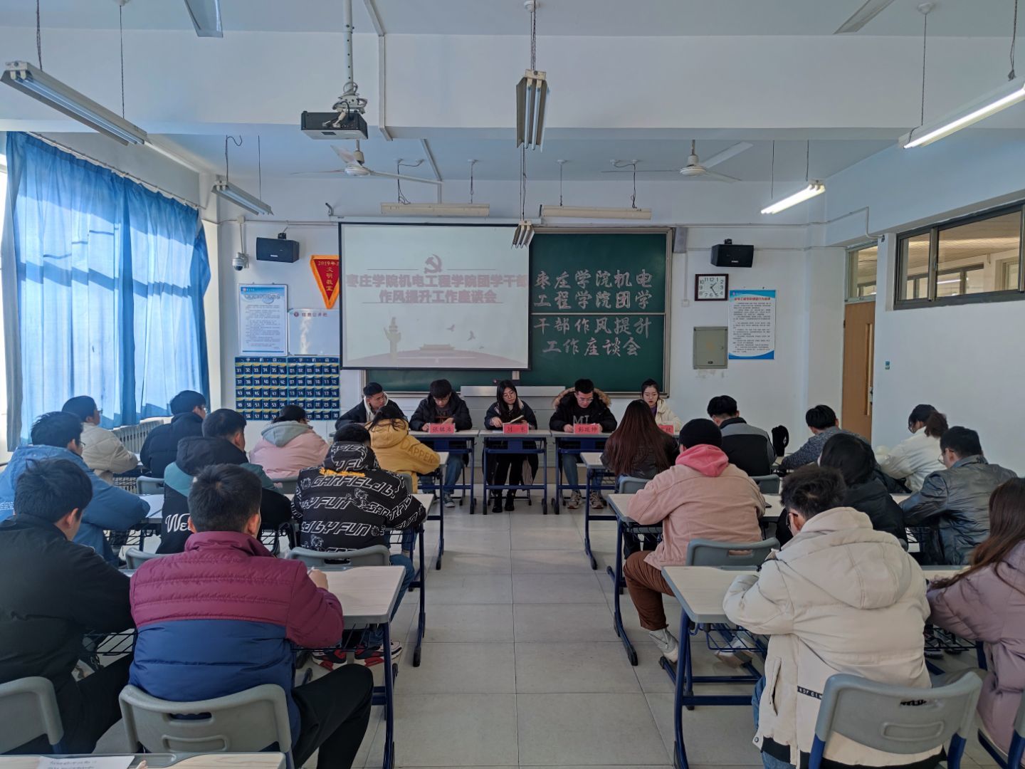 为提升团学组织的组织力、引领力、服务力和大局贡献度,强化团学干部的工作作风,推动学校共青团和学生会深化改革,12月14日中午,beat365官网在理工楼2416教室开展beat365中文官方网站团学干部作风提升工作座谈会,团总支辅导员刘东老师出席本次会议,各班学生代表、部分学生会成员参加本次会议。