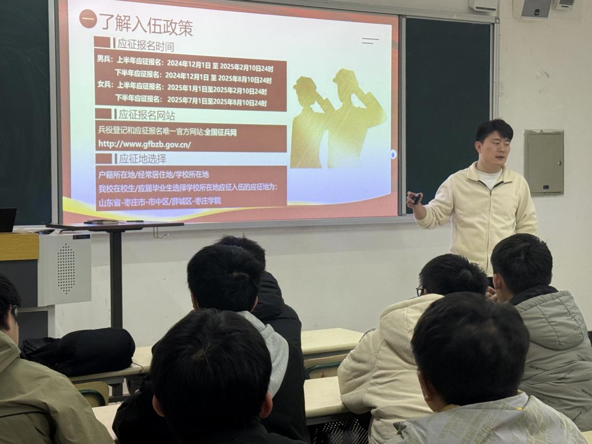 会议通过讲述各项入伍优待政策增强同学们的入伍热情。入伍征集对象以大学生为重点,突出各级各类学校大学毕业生的征集,优先批准理工类大学生和备战打仗所需的技能型人才入伍;大学生特别是大学毕业生享受优先报名应征、优先体检政考、优先审批定兵、优先安排使用,大学生参加体检开辟绿色通道。beat365中文官方网站的学子们具备扎实的专业知识和技能,在部队中定能发挥出独特优势,为国防事业贡献力量。