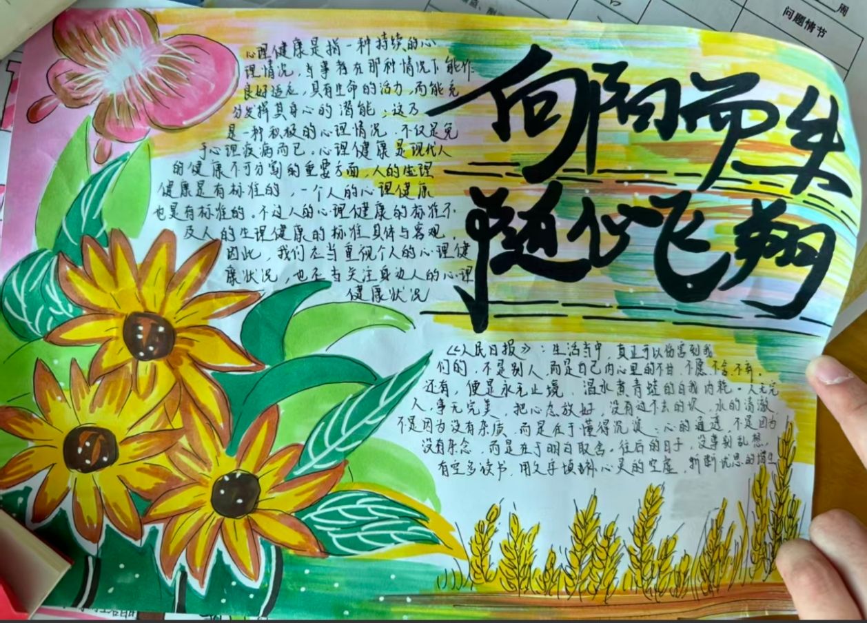 比赛吸引了众多绘画爱好者积极参与,在创作过程中,同学们用心收集素材,大胆运用色彩,将细腻的情感融入笔触,通过图文并茂的形式,生动诠释了对心理健康重要性的理解和对校园温暖氛围的感知。充分发挥想象力和创造力,用心收集资料、巧妙构思版面、精心设计内容,作品展现了学生们对美的独特理解和深刻感悟,为校园文化增添了绚丽色彩。