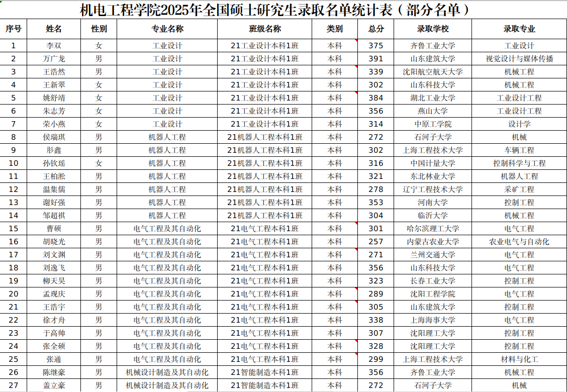 beat365中文官方网站2025届毕业生研究生入学考试录取情况:总计409名毕业生,有236人报考,过线人数达132人,过线率32.27%,考研率为23.96%,最终录取98人。