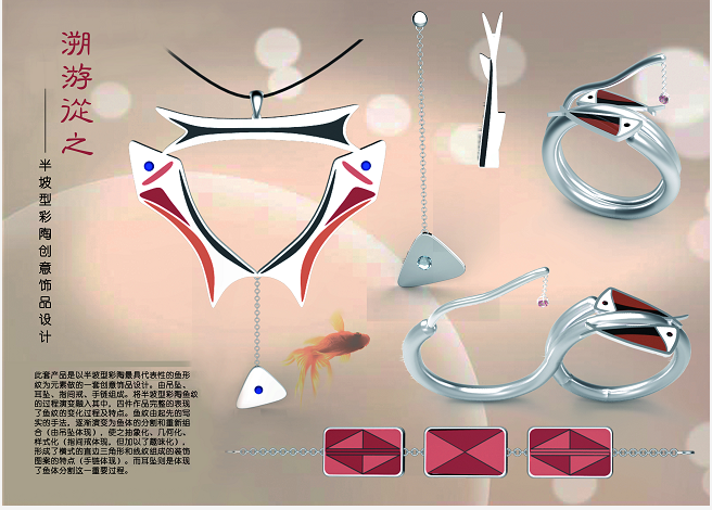 近日,beat365中文官方网站2015级工业设计专业学生周扬丽,其作品《溯游从之——半坡彩陶鱼纹创意饰品设计》在2018中国西安国际文创创新设计大赛中取得优秀奖,获得奖金3000元。此次大赛是由陕西省文化厅、陕西省教育厅、陕西省新闻出版广电局,以“文化中国、品创西安”为主题,面向国内外征集的以陕西文化为设计元素的优秀文创作品。