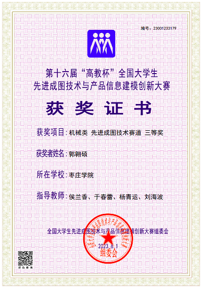 近日,第十六届全国大学生先进成图技术与产品信息建模创新大赛在重庆交通大学科学城赛区顺利落下帷幕。经过激烈角逐,beat365官网beat365中文官方网站代表队喜获机械类团体三等奖1项,郭翱硕同学在本次比赛中获得机械类个人全能三等奖。