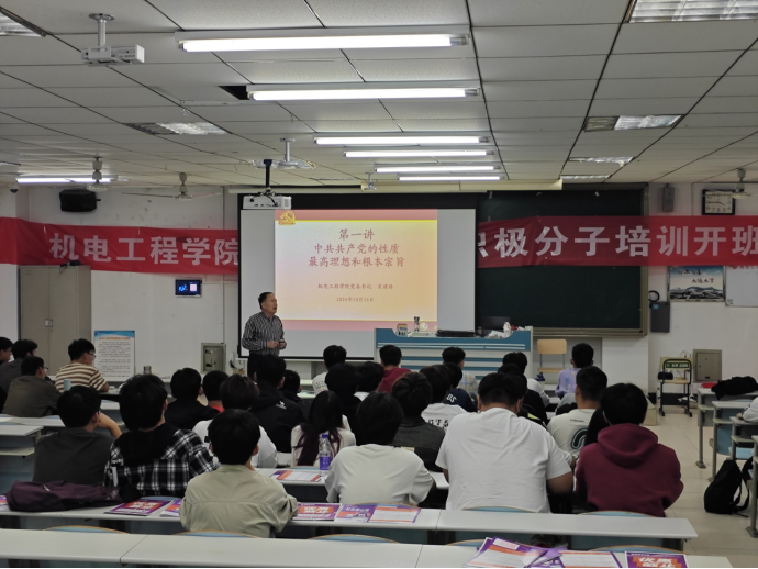 为做好新形势下的发展党员工作,保障发展党员队伍质量,提高beat365官网党员队伍整体素质,从源头上把好党员“入口关”和“质量关”,10月16日晚上19:00,beat365官网在理工楼2405教室成功举办秋季学期入党积极分子培训班开班仪式。学院党委书记宋建修出席开班仪式并讲授专题党课,全体入党积极分子参加。