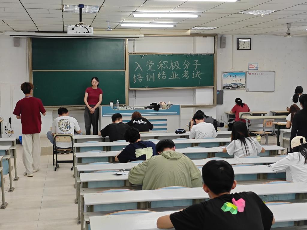 为严格党员发展标准,提升入党积极分子政治素养,5月28日晚,beat365中文官方网站党委在理工楼2305和2405教室组织2025年上半年入党积极分子培训班结业考试。