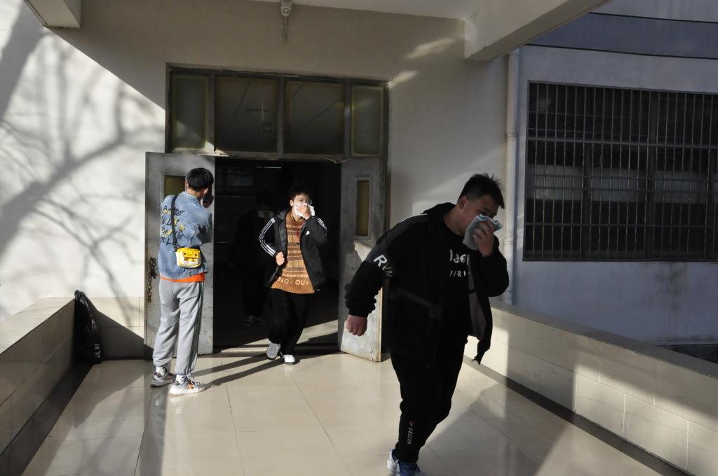 15时,随着刺耳的消防警报,理工教学楼四楼“烟雾弥漫”,面对突如其来的“火”警,全体师生按照消防演练预案迅速行动,各楼层安全员及相关组织人员立即到达指定岗位,做好疏散准备。各班学生在辅导员的带领下,按照疏散线路有序撤离,大家用湿毛巾(湿手帕)捂住口鼻、弯腰、低姿、小碎步,动作规范、迅速地向指定地点集合,各班清点并上报人数,顺利完成疏散演练。
