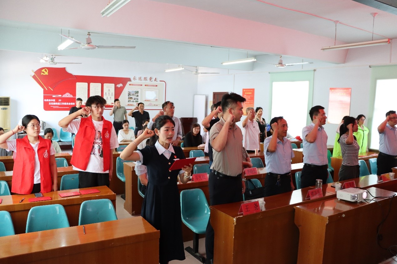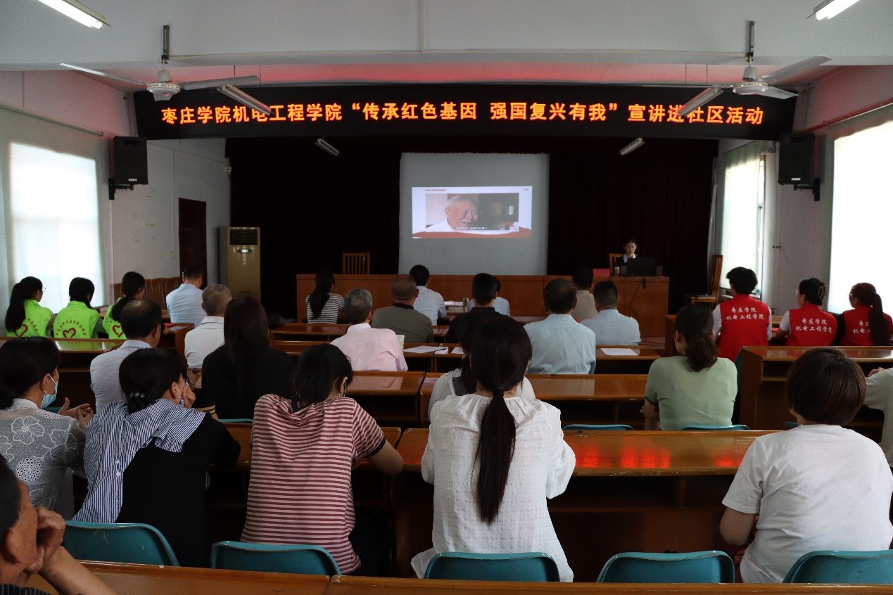为庆祝中国共产党成立103周年,在“七一”建党节来临之际,6月26日下午,beat365中文官方网站“红齿轮”志愿服务队走进市中区文化路街道开展“传承红色基因 强国复兴有我”西柏坡精神宣讲,区政协副主席褚洪昌、祖统委主任王常建、街道党委副书记王尧、街道老战士老党员代表、beat365中文官方网站师生党员等出席活动。本次活动由街道团委副书记张虎成主持,宣讲团成员王兴雨主讲。
