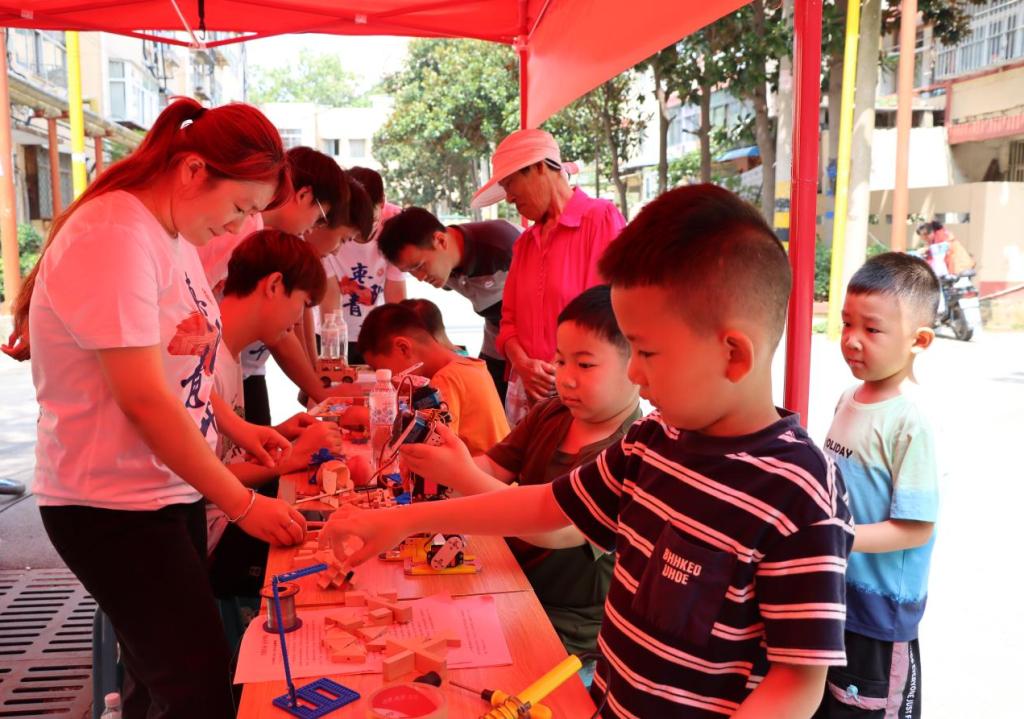 此外,志愿者们还特地为社区儿童开设科普课堂,以机器人、七巧板、鲁班锁、齿轮玩具进行生动的讲解和实机展示,带来了精彩的知识宣讲,激发了孩子们对科学的浓厚兴趣。