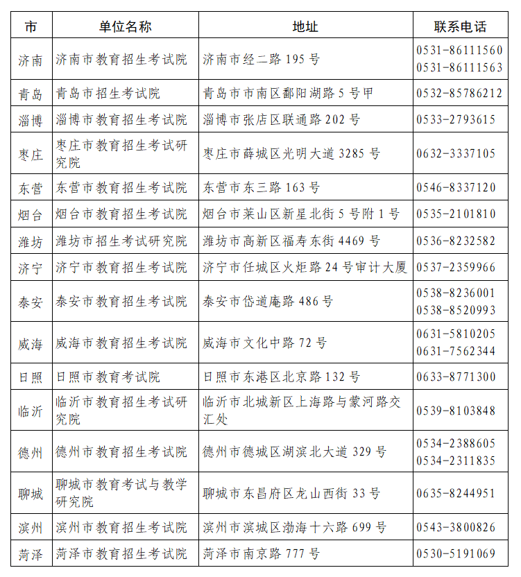 附件3:各市教育招生考试机构地址及联系方式