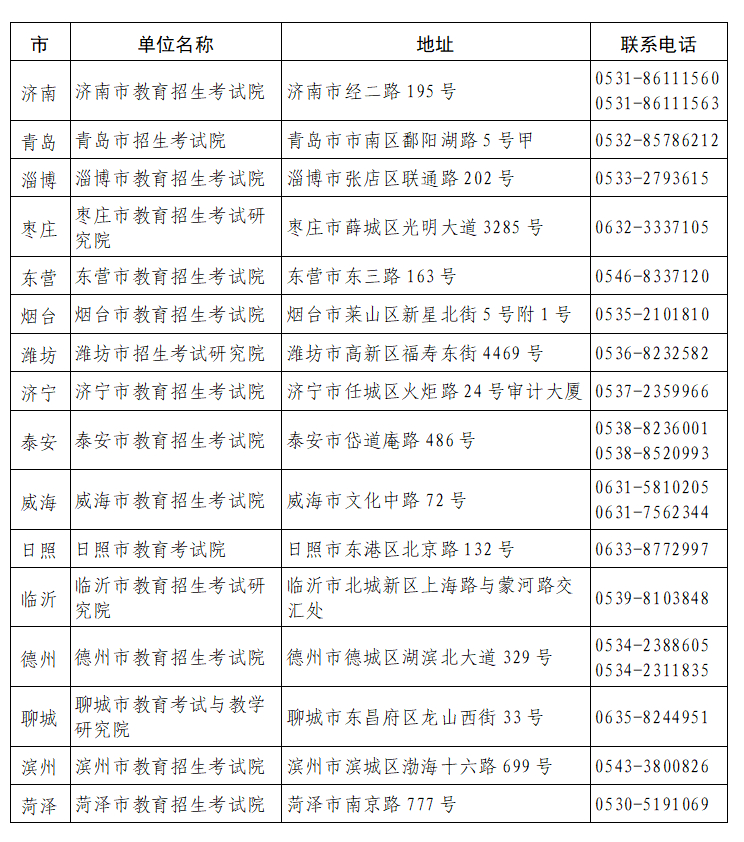 附件3:各市教育招生考试机构地址及联系方式