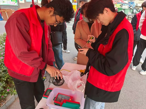 活动伊始,志愿者们分工明确,迅速拉好横幅、摆好服务台,做好了准备工作。在社区的宣传下,居民群众带着需要维修的电风扇、电水壶、剃须刀等电器赶来,随后志愿者仔细检查并耐心询问家电损坏的情况,认真地修理每个小家电,通过拆卸、更换配件、调试,一件件损坏的电器重新运转,发现棘手问题后,他们积极讨论,共同商议解决方案,竭尽所能为居民解决问题,并在维修的过程中向居民介绍日常家电的使用方法及保养知识,避免因使用不当而导致电器损坏。在志愿者的努力下,多数电器被修好,对于无法修缮的电器,志愿者们也为居民群众们提供解决的措施。志愿者们热情的态度和扎实的实力获得了社区居民的交口称赞。