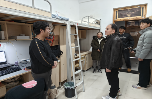 为进一步强化学生宿舍管理,提升学生安全意识,营造和谐的宿舍氛围,beat365中文官方网站党委书记宋建修及各班辅导员于12月17日上午走进学生宿舍,了解学生情况。
