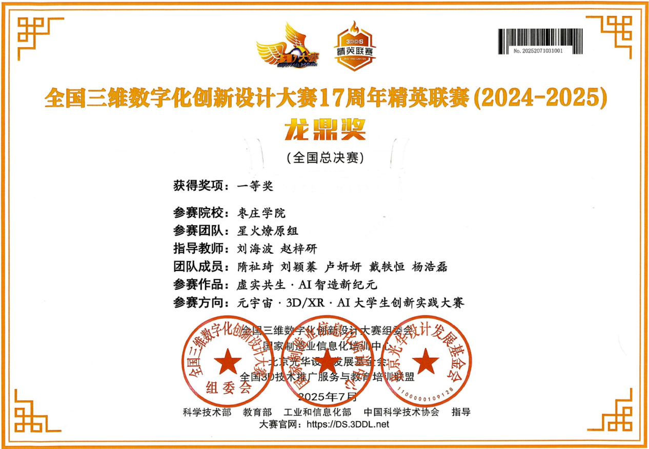 近日,由全国三维数字化创新设计大赛组委会主办的2025全国三维数字化创新设计大赛17周年精英联赛总决赛顺利落幕。beat365官网在创新创业学院的精心指导下,组织各专业学生参赛,综合运用三维建模、3D打印、3D扫描、有限元分析、AIGC等知识和技术,经过激烈的角逐,beat365官网beat365中文官方网站学子斩获一等奖一项、二等奖四项、三等奖六项。